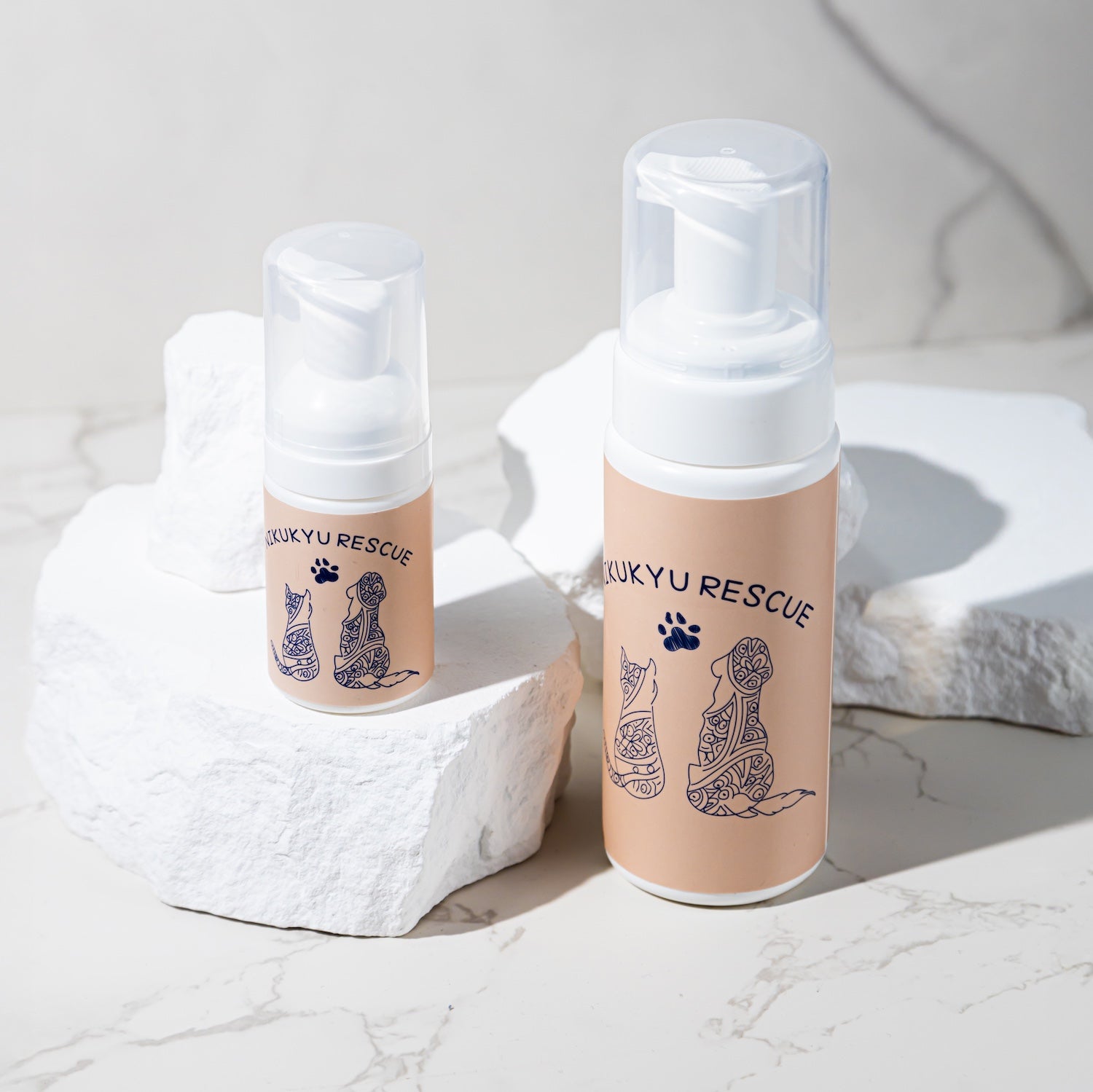 ポンプを押すと泡が出て、肉球に塗り込めば洗浄完了です。